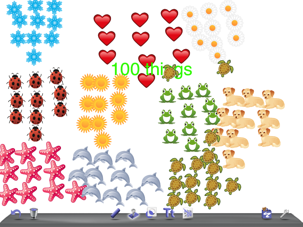 We used the iPads today to show 100. We used the Doodle Buddy app. The children used the stamp tool to make 10 sets of 10 stamps. We got some really cool collections of stamps!