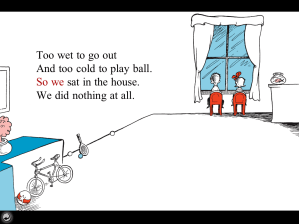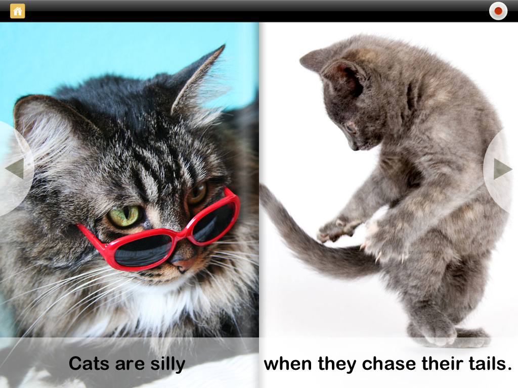 Then we introduced the Cat in the Hat app. This is an app that tells the Cat in the Hat story. You have the option of having it read to you or you can read it by yourself. Each page had hot buttons on the screen that the children can touch to find out the word that goes with the object or has something happen! I had the children go through the story once with the read to me option. Then I asked them to try to read the story by themselves. The really cool thing about this option is that if the children come to a word they don’t know or remember all they have to do is touch the screen on that word and the word is read to them. All the children were sitting or laying down on the carpet totally absorbed in the story and getting help with the words they needed. Totally cool!