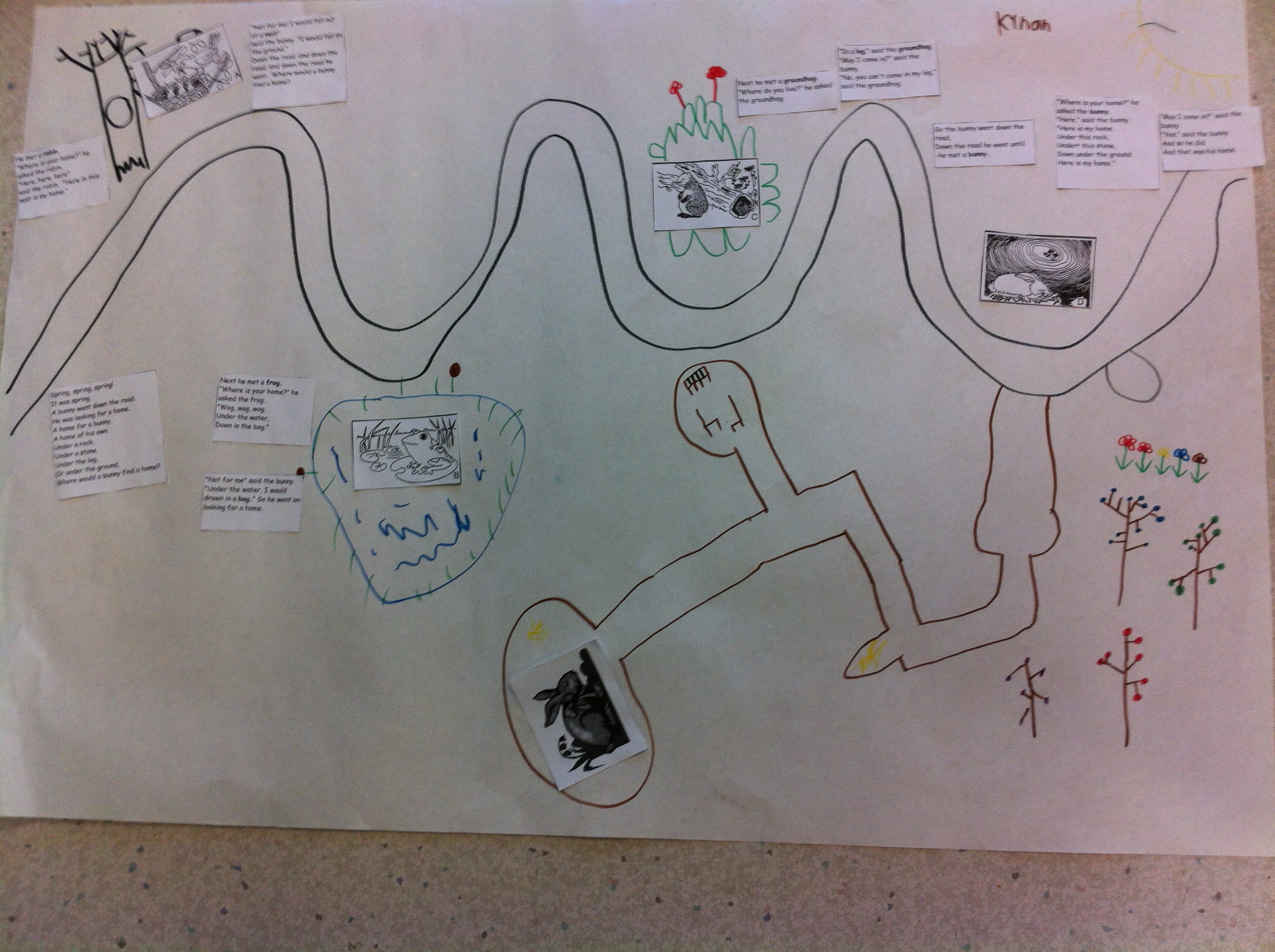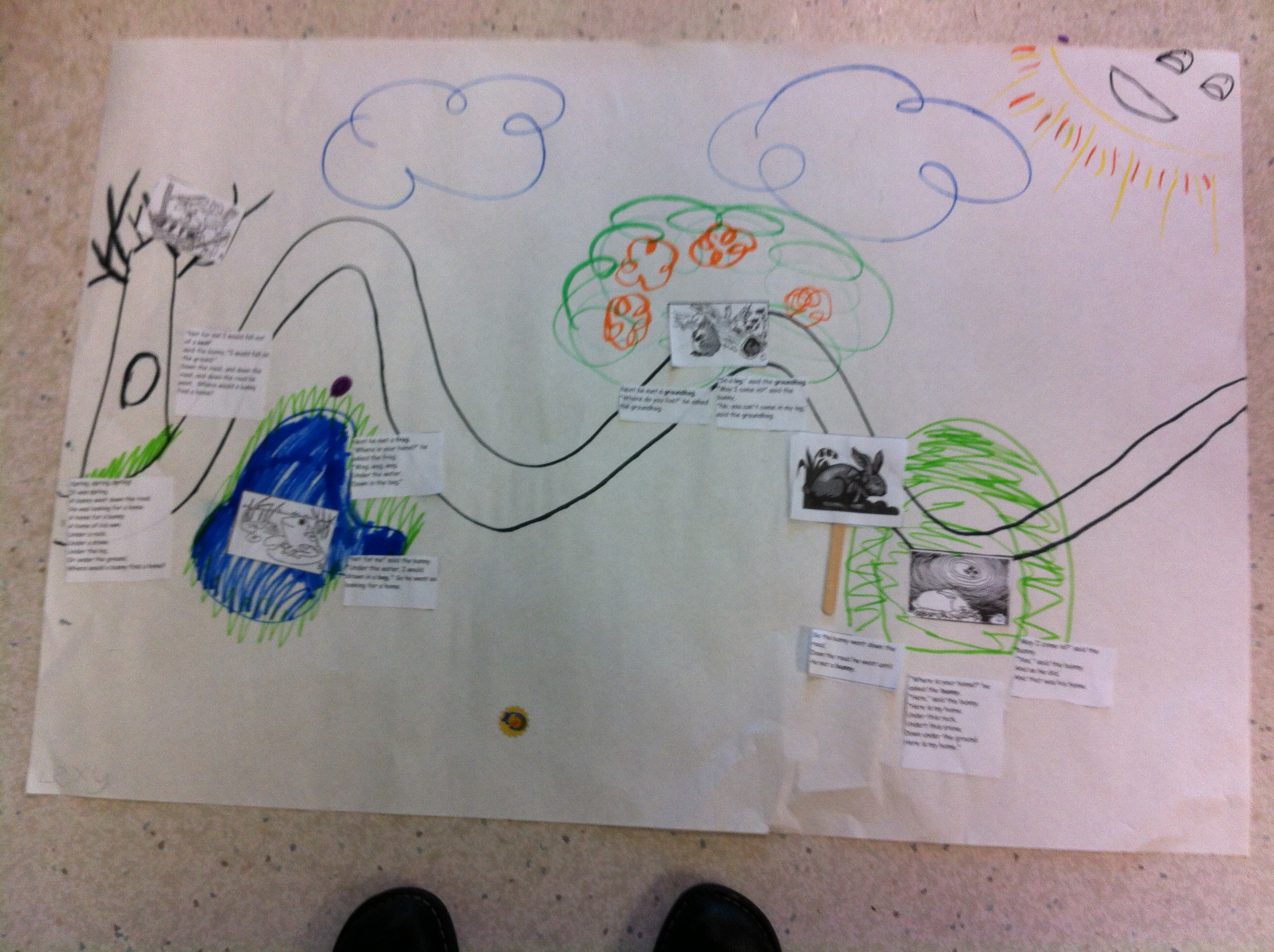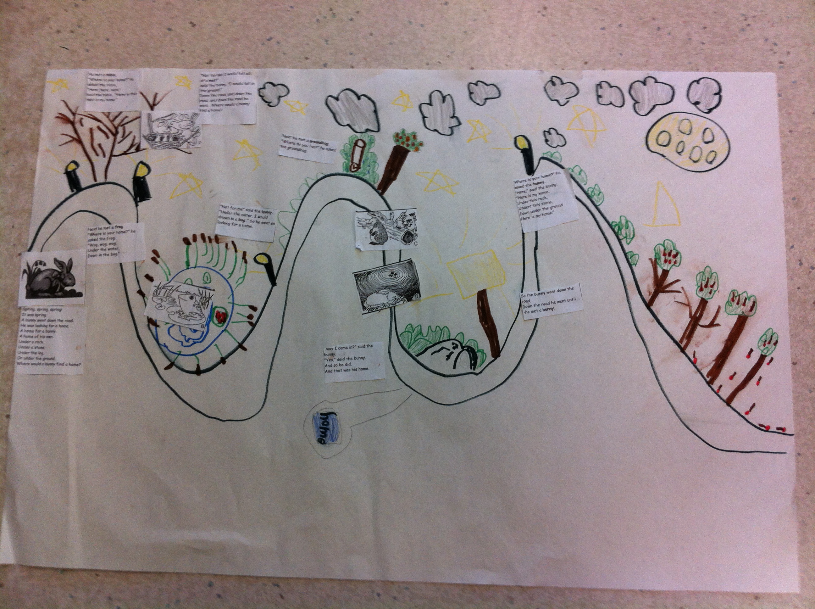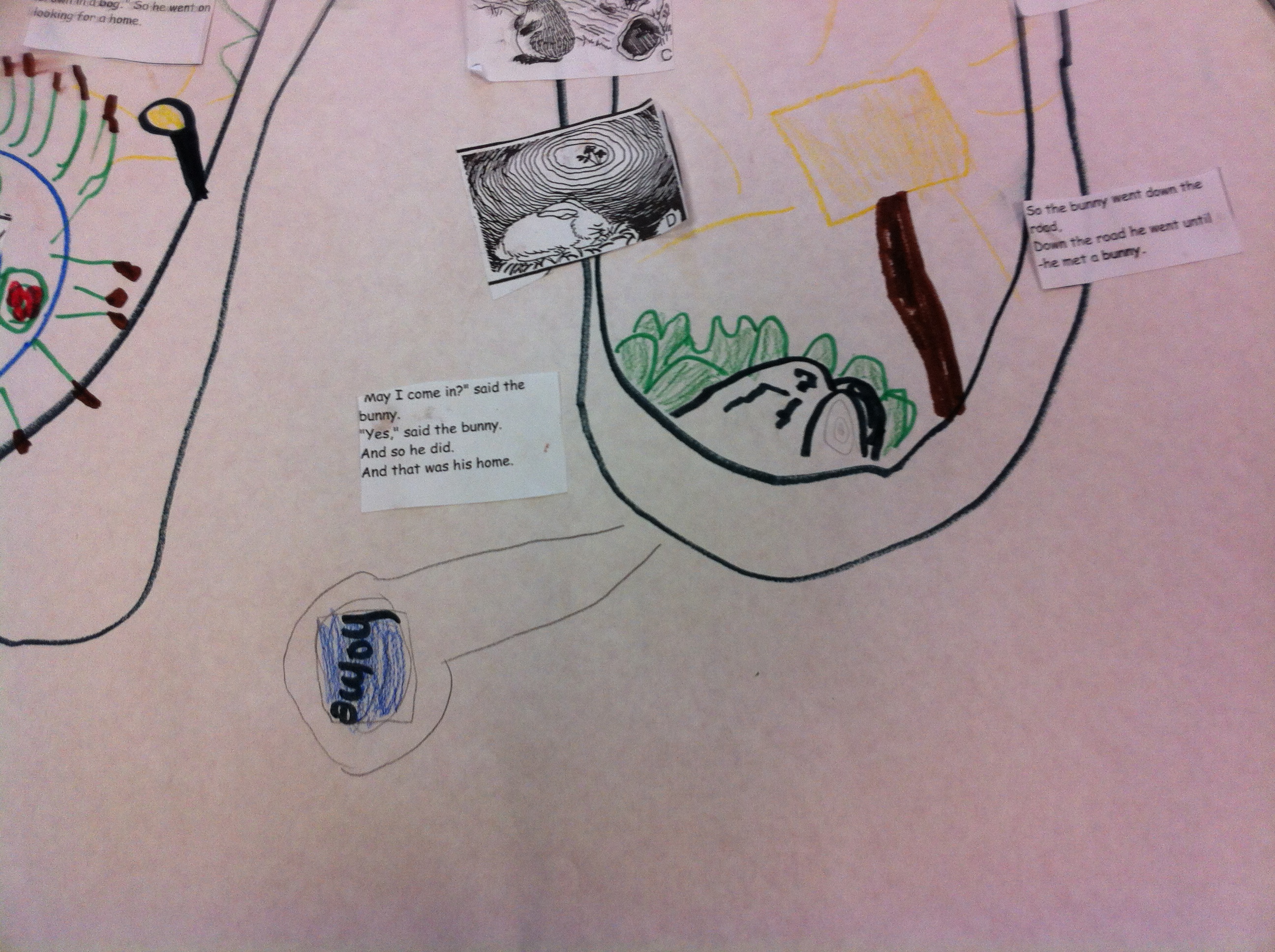 Last Friday we did a story map. We read the story The Mitten by Jan Brett and then the children retold the story by creating a story map. They seemed to really enjoy putting it all together. I think they especially liked licking the envelope , sealing it, and then cutting it open at the end to make the secret compartment for the animals to disappear into behind the mitten picture! Hopefully, they shared it with you.