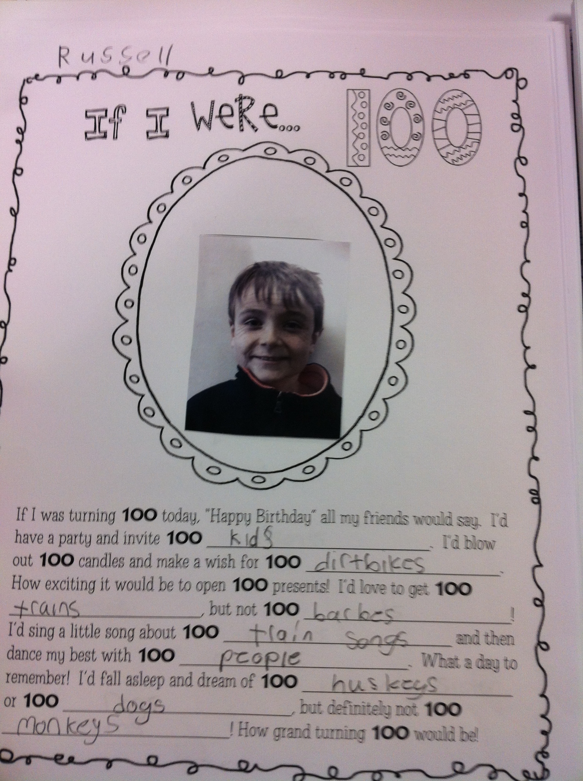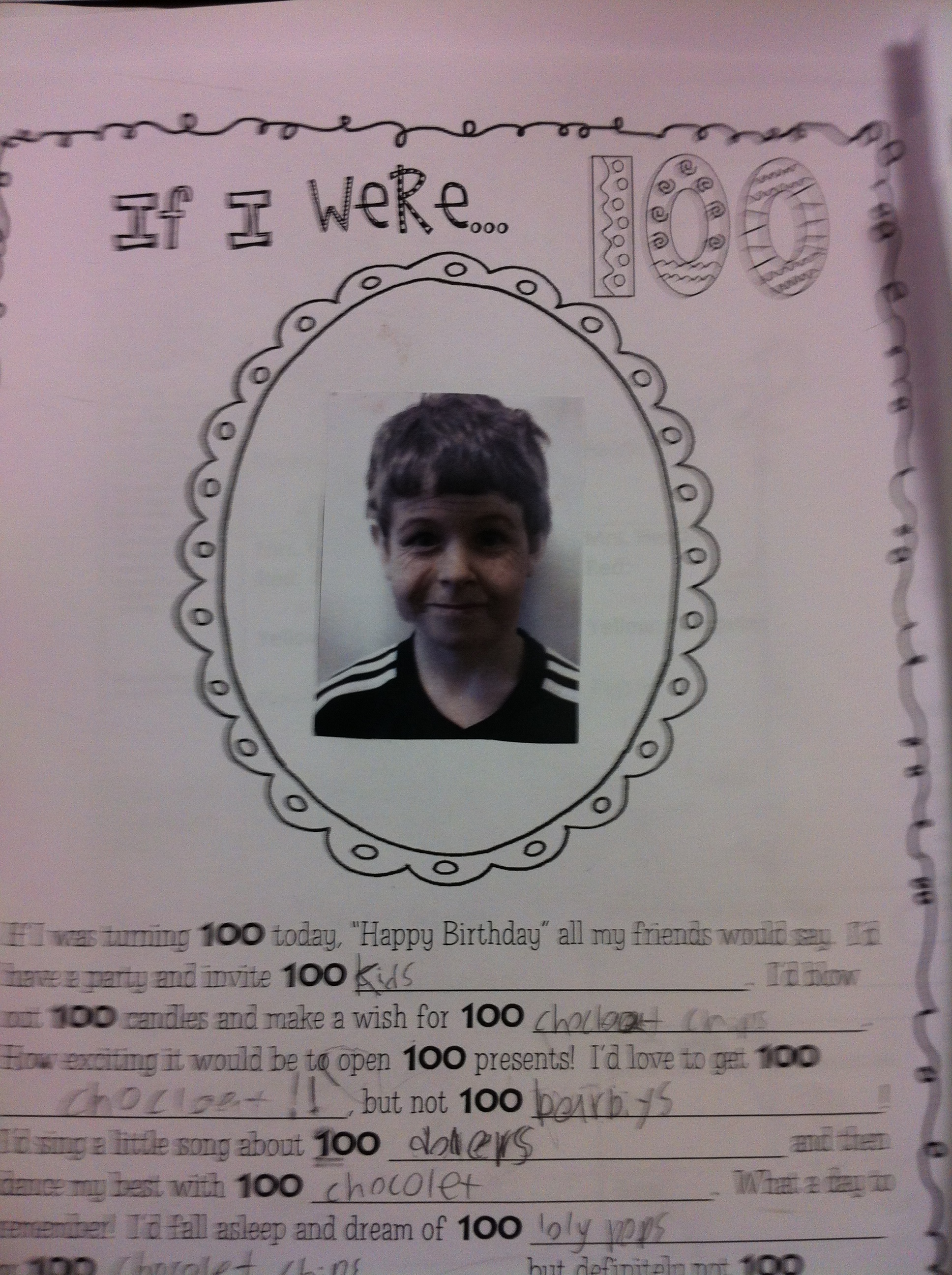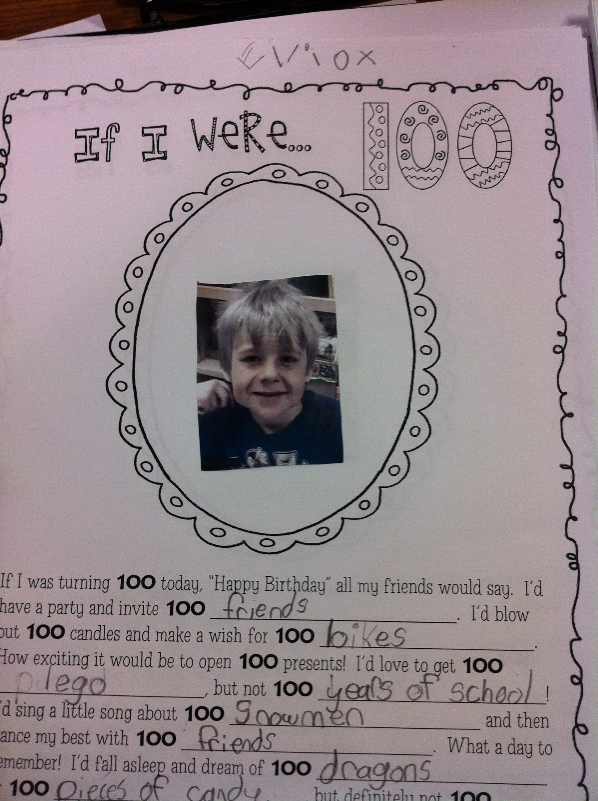This post is mostly about 100 day but it is also the 100th post of this blog! Very special for me! I have learned a lot about technology and hopefully you have enjoyed seeing little snapshots of what happens in your child’s life at school.