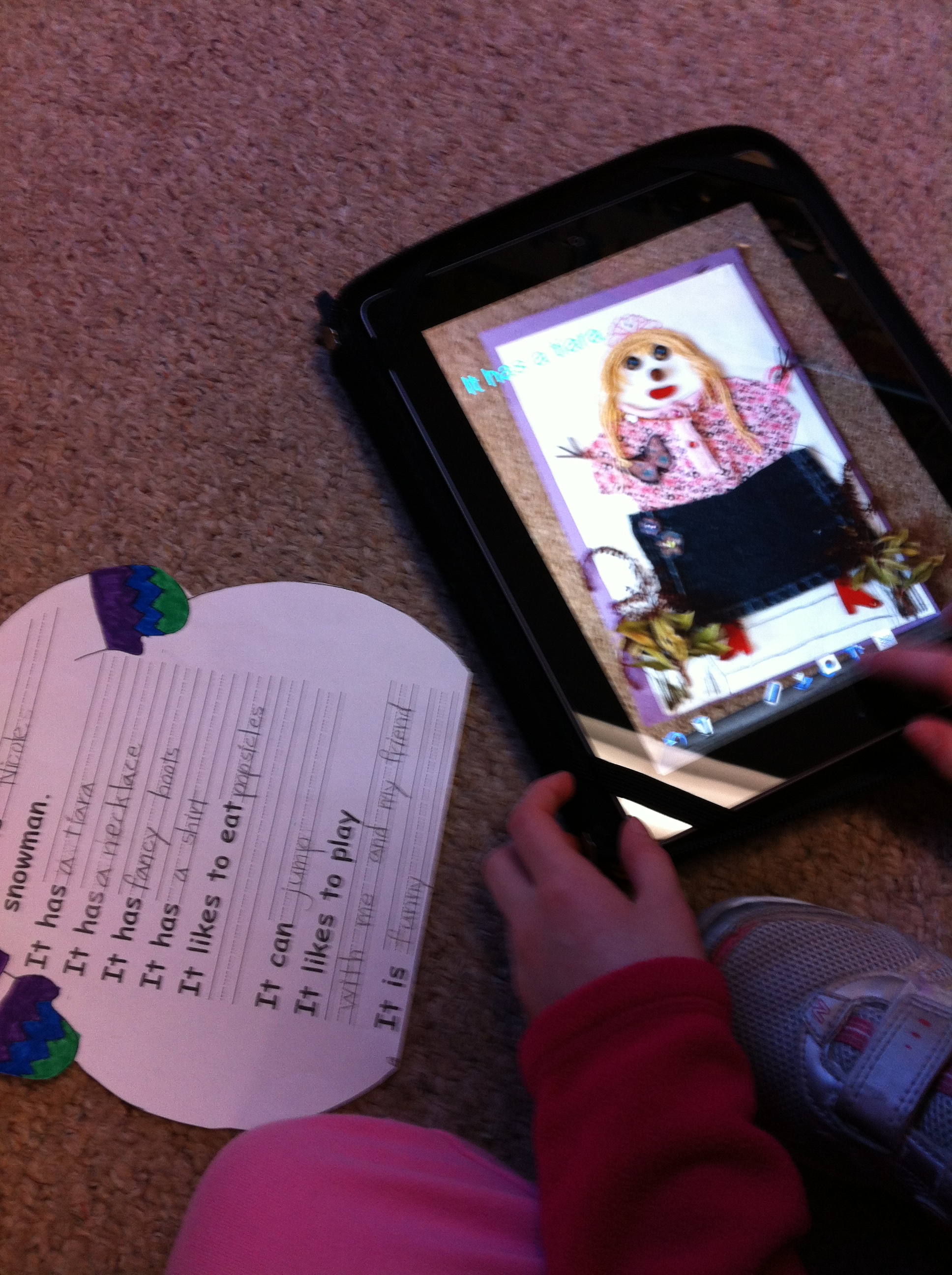 Last week the district set of iPads was delivered to our school and we have been having a great time creating books and pictures with them. We have also been practicing a variety of math and reading skills with some really neat apps.
