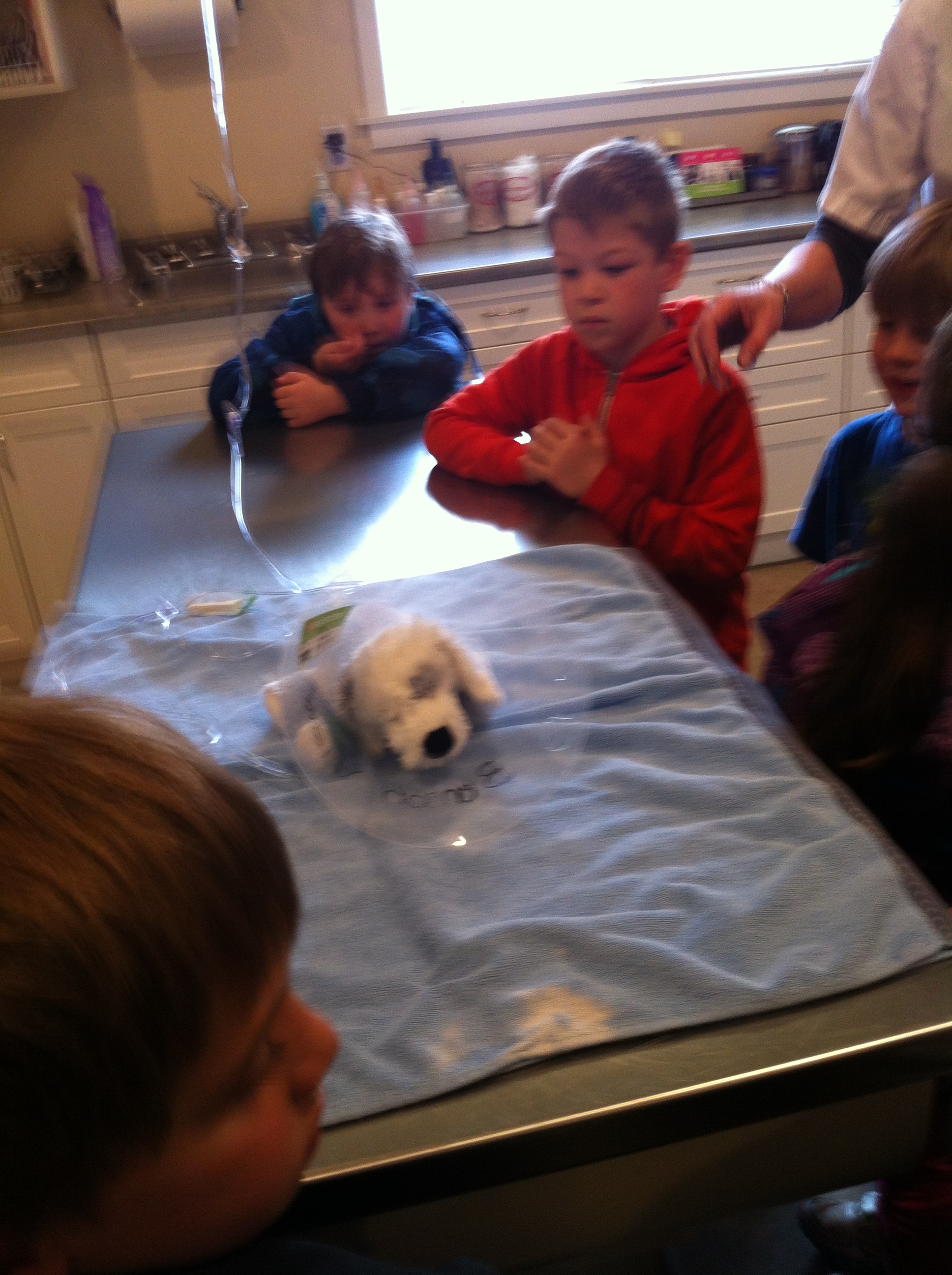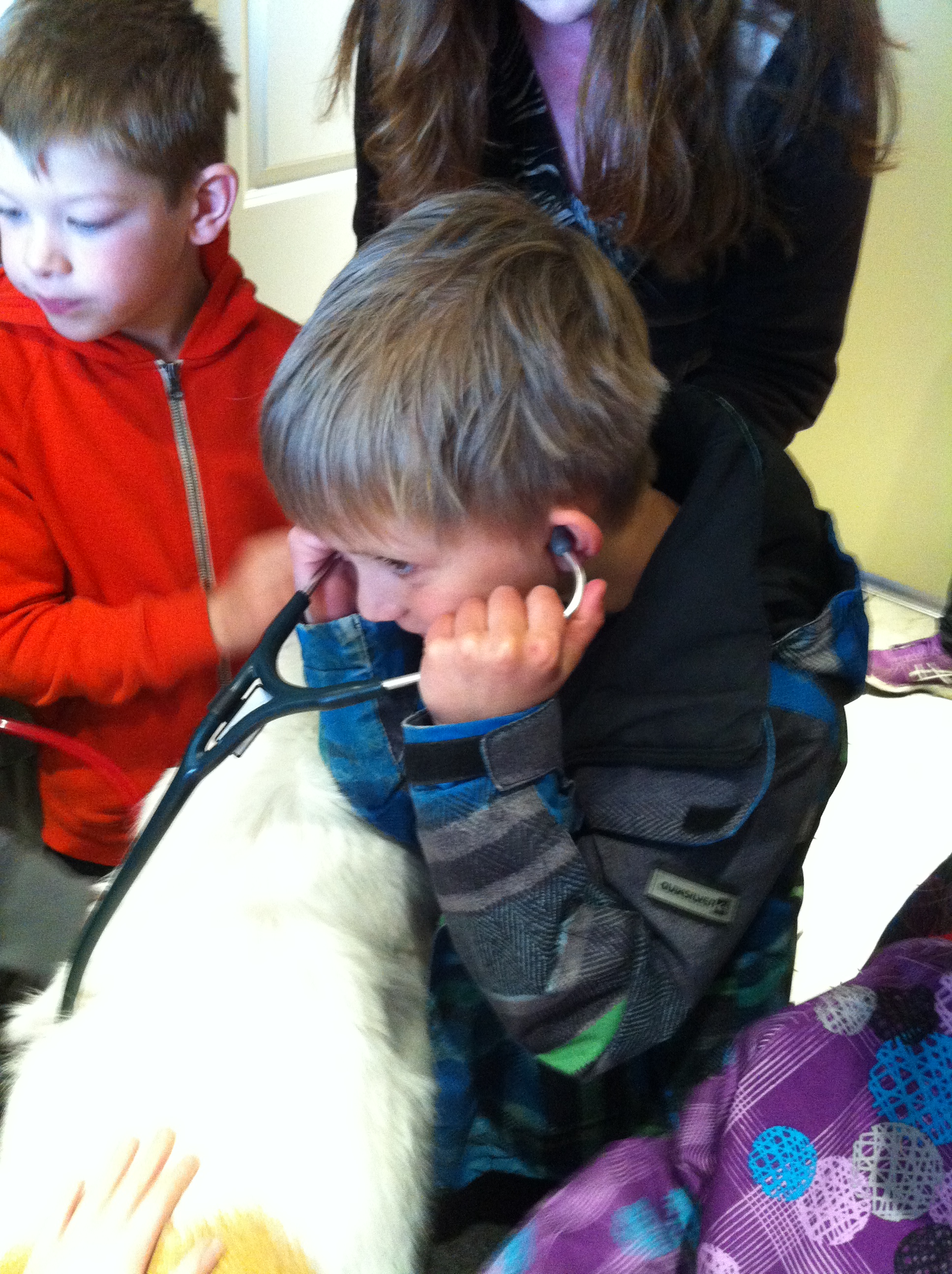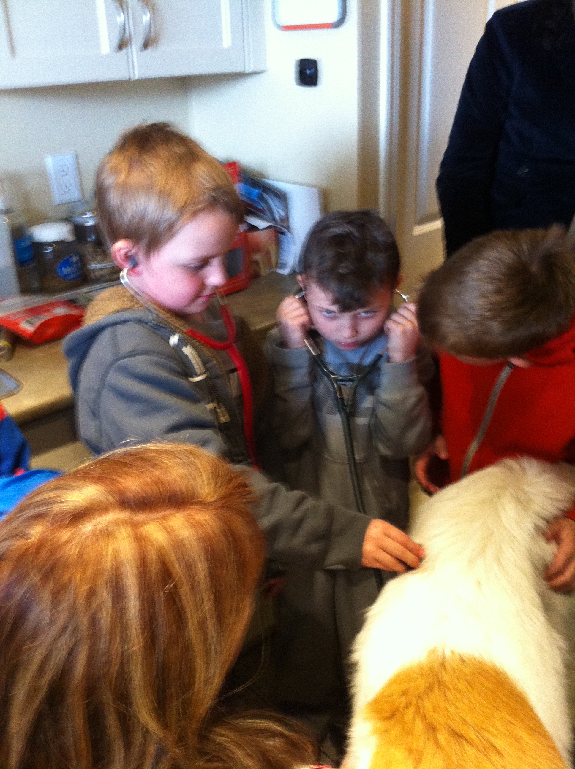 Last week we had a wonderful field trip to the vet clinic! We got a tour of the vet clinic and even got to listen to this dog’s heart beat!