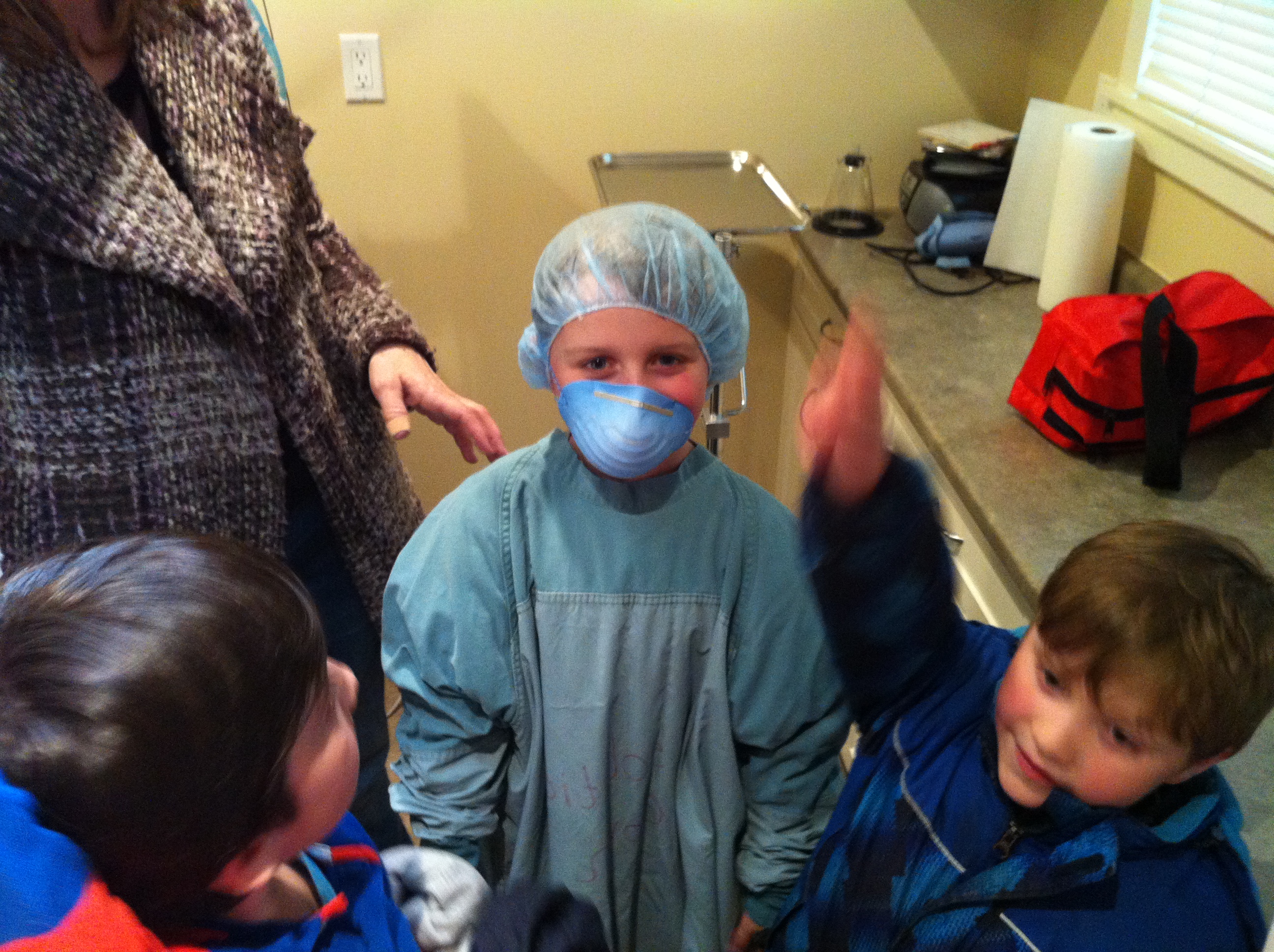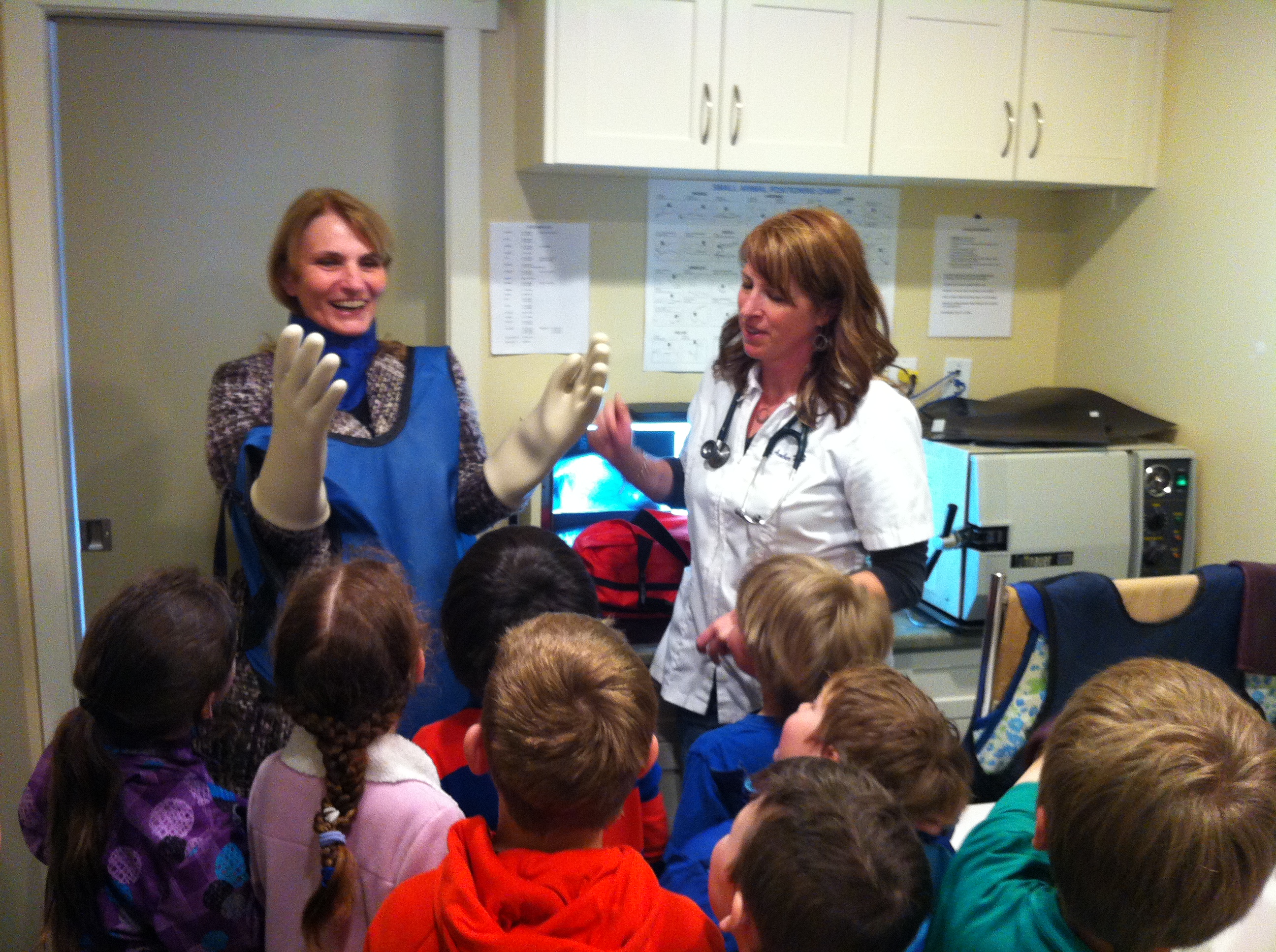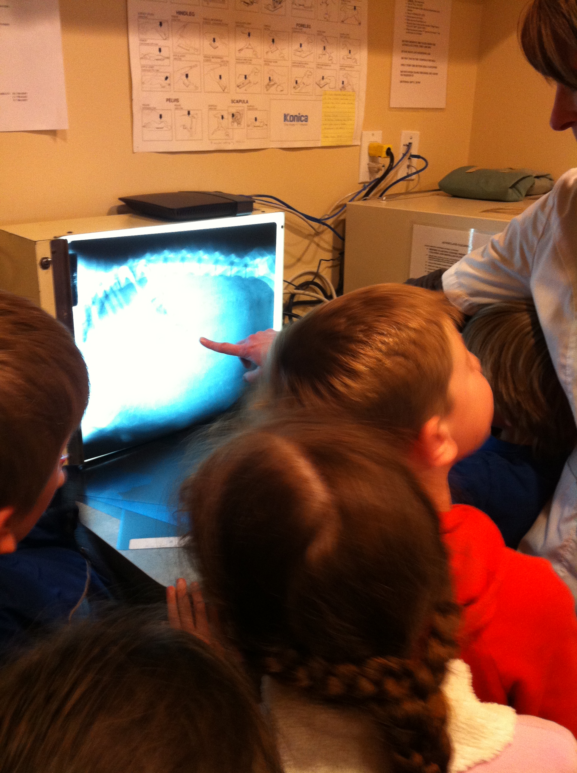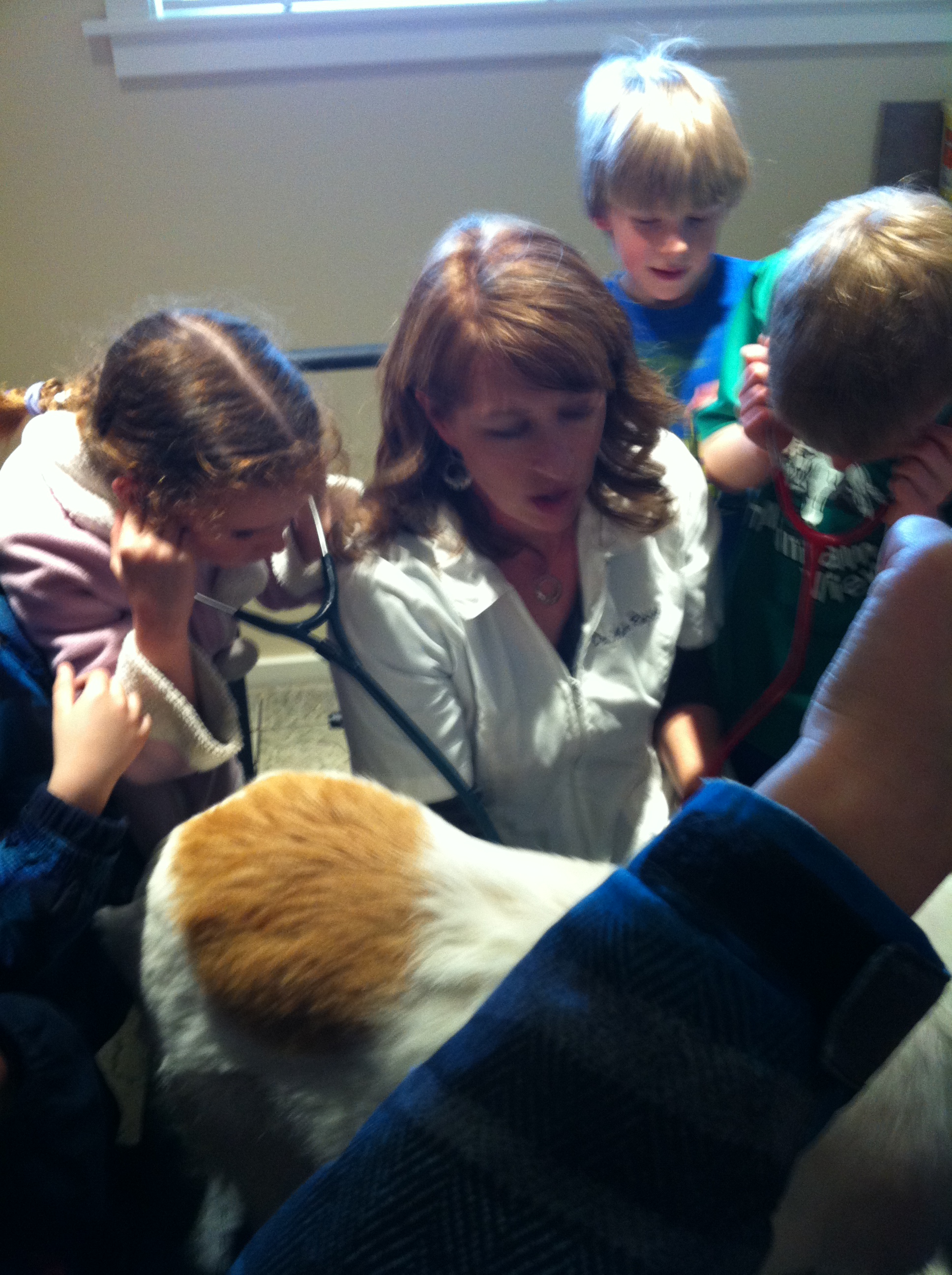 Last week we had a wonderful field trip to the vet clinic! We got a tour of the vet clinic and even got to listen to this dog’s heart beat!