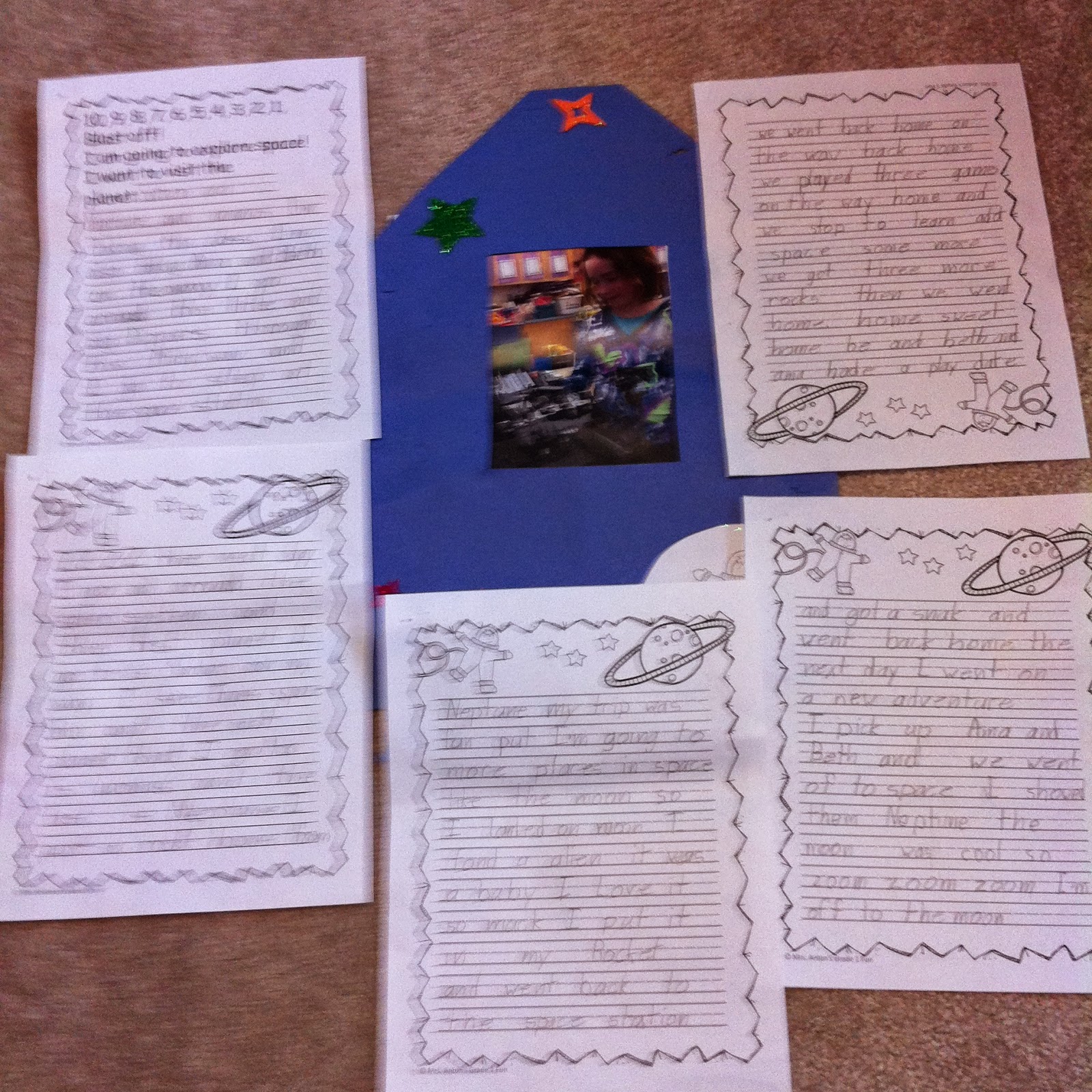 We wrote stories about a space trip using the pictures we created using the Spacecraft 3D app.  Each child  choose the spacecraft that they wanted to have their picture taken with and then posed with their choice.