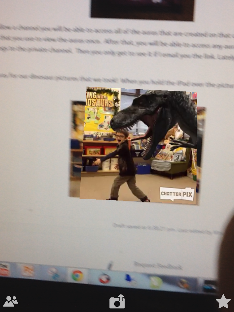 I have also created auras for our dinosaur pictures that we took! When you hold the iPad over the picture you can see the dinosaur Chatterpix videos we created.