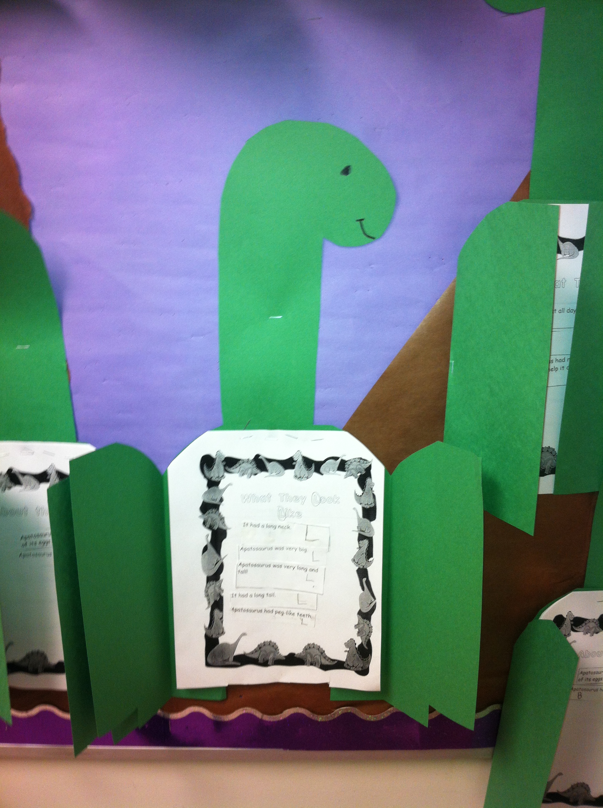 We have also worked on a dinosaur research project.  We learned all about the Apatosaurus (also known as Brontosaurus).  The children sorted the facts about Apatosaurus into four categories.  After we read through all the facts the children decided which category was the best fit for the fact.