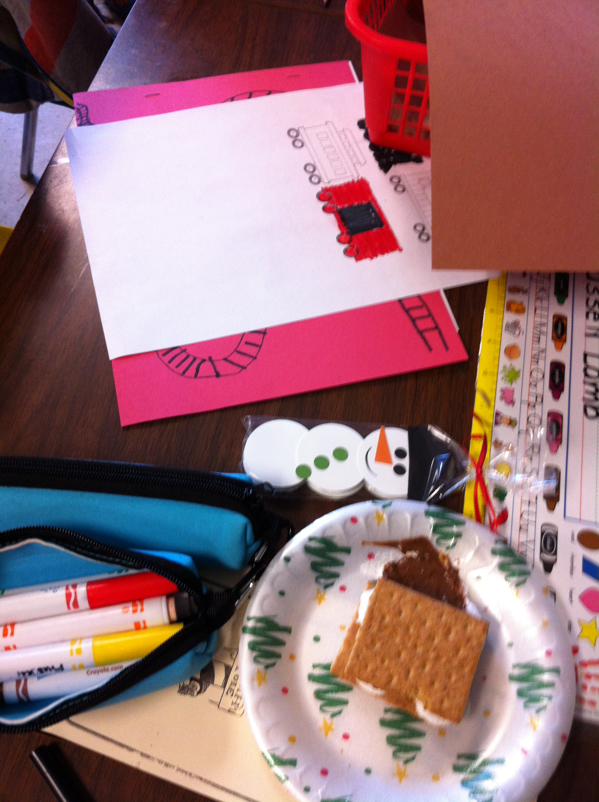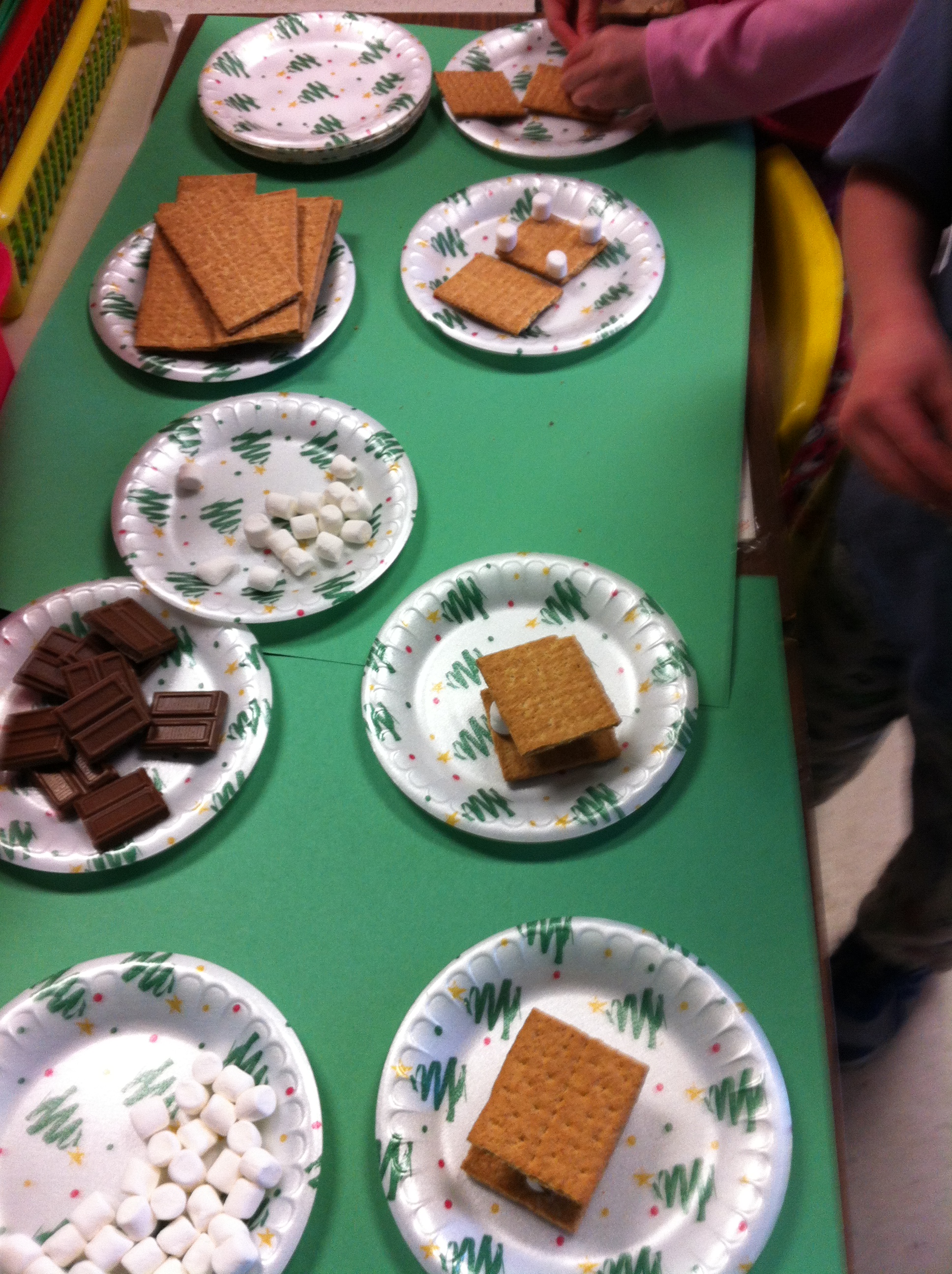 Our Polar Express day was a lot of fun! Thank you to everyone for supporting this day! We made hot chocolate and had yummy cookies. We used up the leftover graham crackers from the Gingerbread house building to make some S’mores! Very yummy!