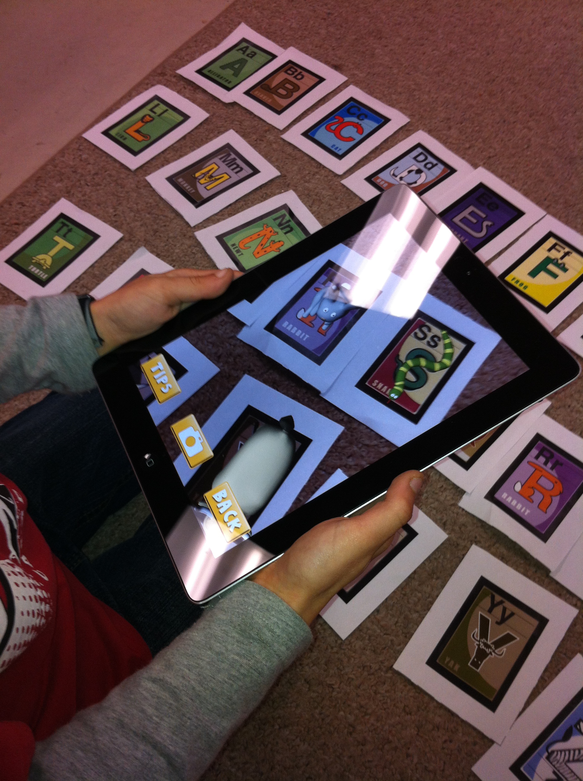 We have been having some fun with a cool augmented reality app called Quiver (used to be known as CoLAR). I downloaded the trigger image page which is a colouring page found on their website. I had the children colour the page and then used our smart board to share what happens when you hold an iPad with the app open over the trigger image of the pumpkins. The pumpkins get up and dance around! Too much fun!