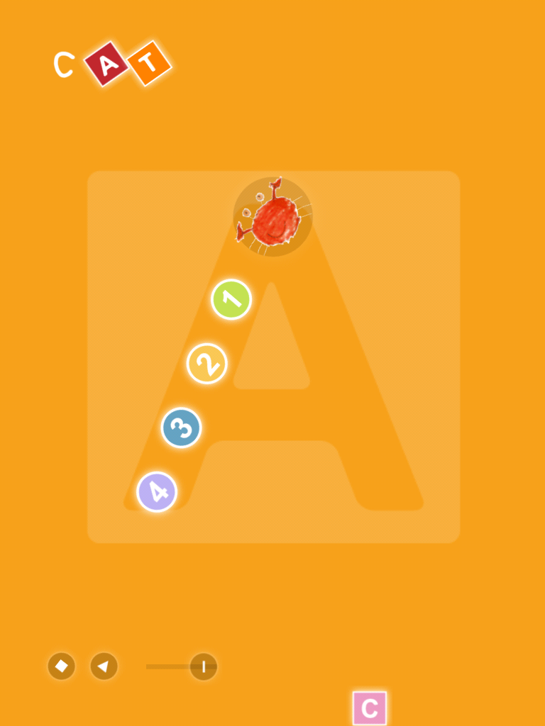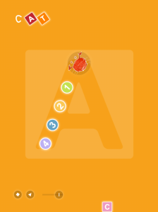 The other app is great for encouraging the correct formation of letters in printing. It only pays attention when you start the letter at the correct spot. As you print the letters you also spell simple words and see children’s illustrations depicting the words. It is called I Write Words.