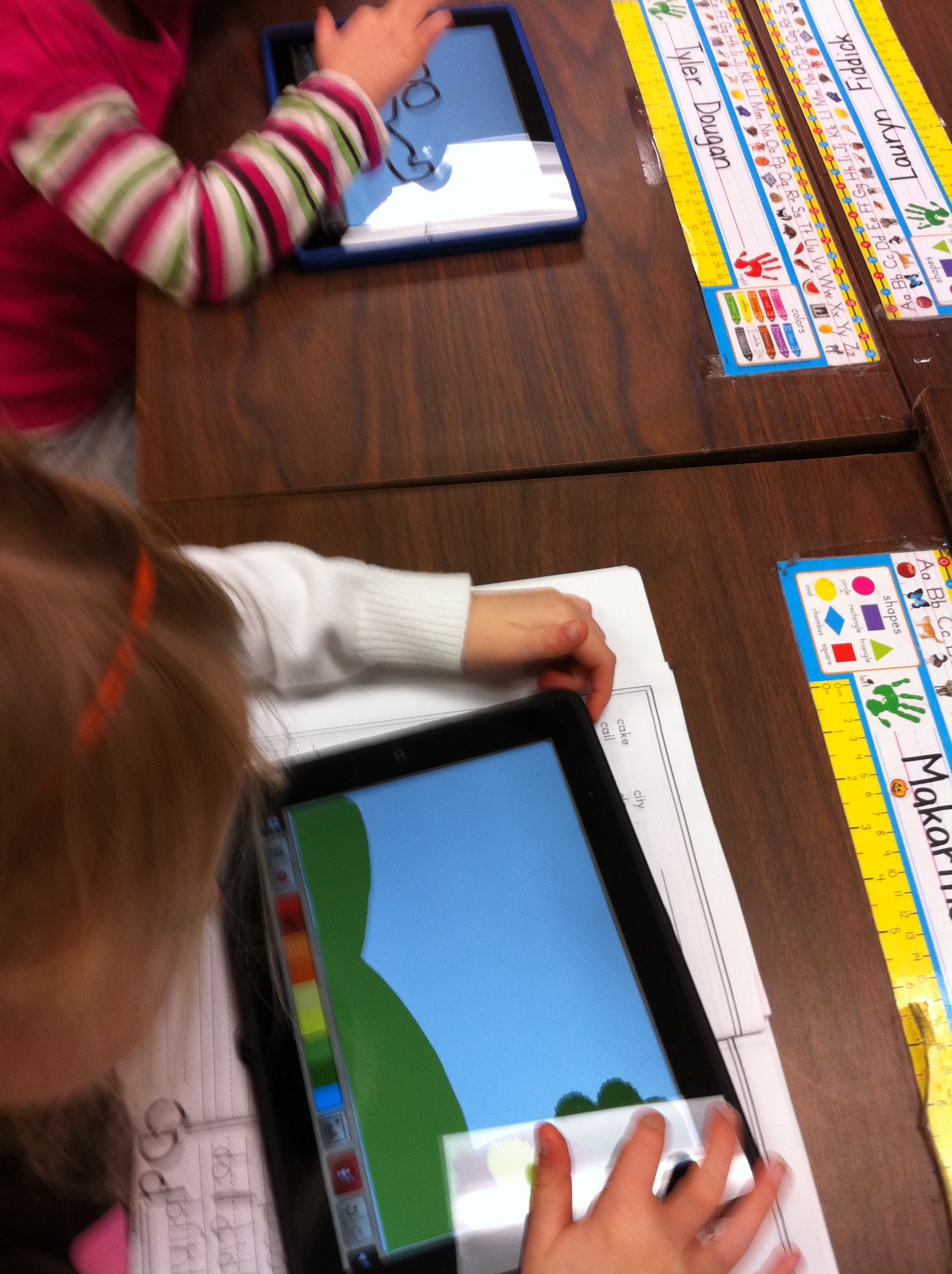 I am very proud of the students because it takes quite a bit of thinking to take pictures using the iPads and add an augmented image that they need to resize. Then they had to save it to the camera roll, open another app, open a new story within the app, go to the camera roll, import the pictures, resize the pictures, add text, and use the text prompt to check for spelling. Then they repeated the process to make the required number of pages. Pretty good for six year olds!