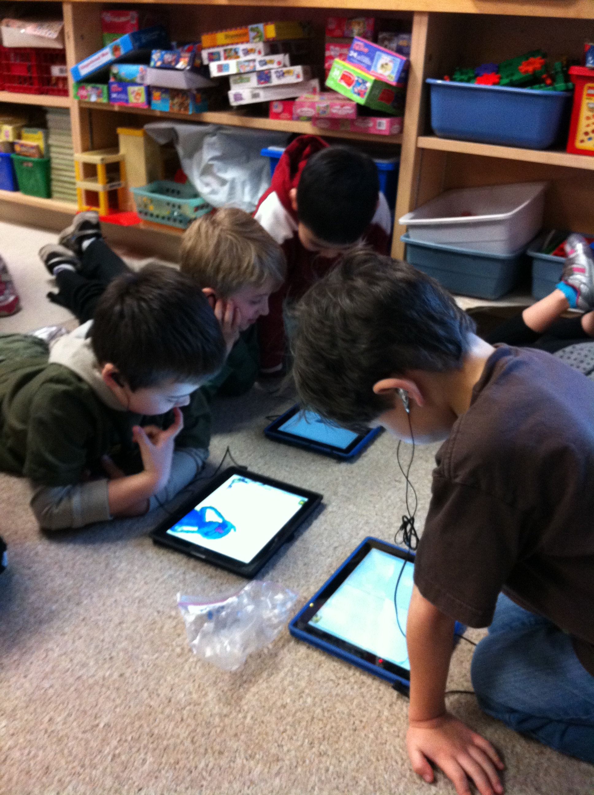 One of the apps we used is an augmented reality app called Walking with Dinosaurs. We use the photo booth option in the app to create pictures that add an augmented image of a dinosaur to a photo! We had a lot of fun creating photos in which we posed with an augmented image of a dinosaur! We will be using these pictures for a creative writing exercise.