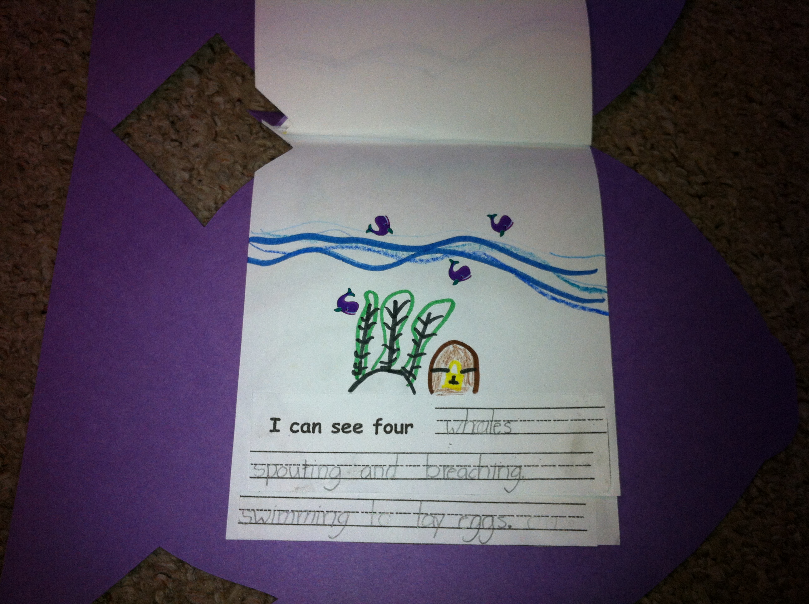 We have also been compiling an ocean folder! We did a research report about whales and found out about a lot of cool facts. Did you know that the blue whale is even noisier than a jet engine! We sorted all the facts into four different categories. There were About the Blue Whale, About the Babies, What They Eat and Cool Facts!